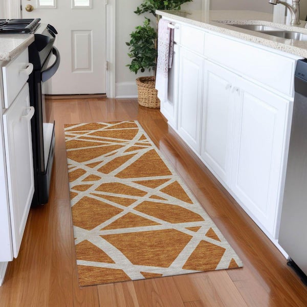 Mayfield Premium Machine Washable Abstract AMF1040 Copper 2 ft. 3 in. x 7 ft. 6 in. Runner Rug