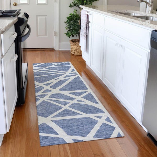 Mayfield Premium Machine Washable Abstract AMF1040 Denim 2 ft. 3 in. x 7 ft. 6 in. Runner Rug