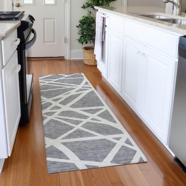 Mayfield Premium Machine Washable Abstract AMF1040 Gray 2 ft. 3 in. x 7 ft. 6 in. Runner Rug