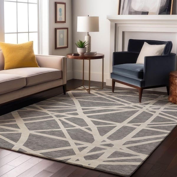 Mayfield Premium Machine Washable Abstract AMF1040 Gray 3 ft. x 4 ft. Area Rug