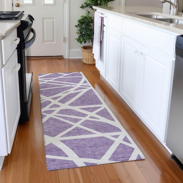 Mayfield Premium Machine Washable Abstract AMF1040 Lavender 2 ft. 3 in. x 7 ft. 6 in. Runner Rug