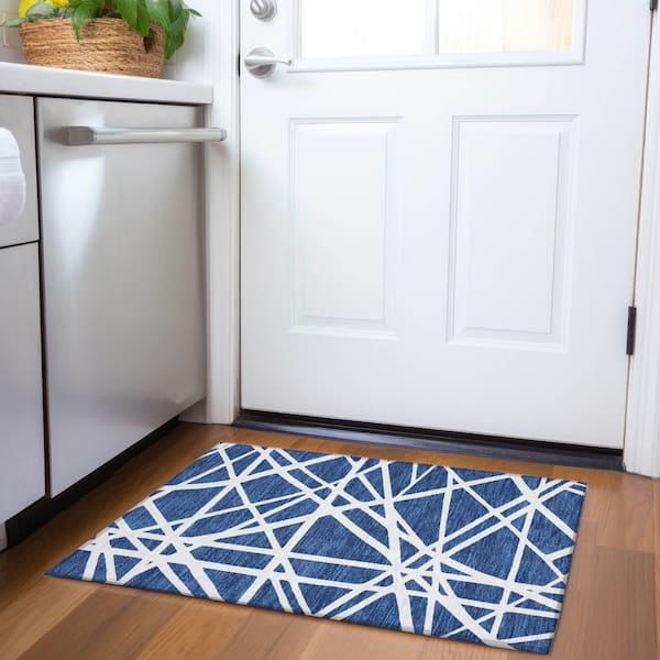 Mayfield Premium Machine Washable Abstract AMF1040 Navy 2 ft. x 3 ft. Area Rug