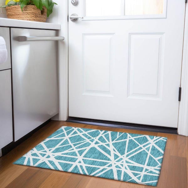 Mayfield Premium Machine Washable Abstract AMF1040 Teal 2 ft. x 3 ft. Area Rug