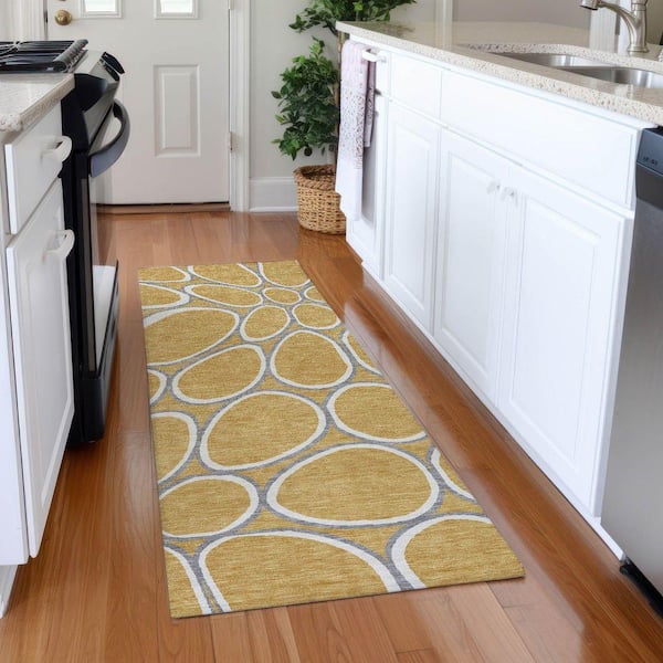 Mayfield Premium Machine Washable Abstract AMF1041 Gold 2 ft. 3 in. x 7 ft. 6 in. Runner Rug