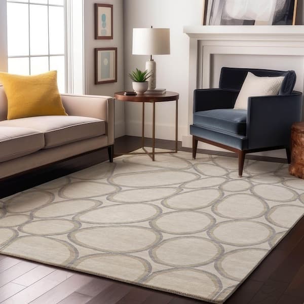 Mayfield Premium Machine Washable Abstract AMF1041 Ivory 3 ft. x 5 ft. Area Rug