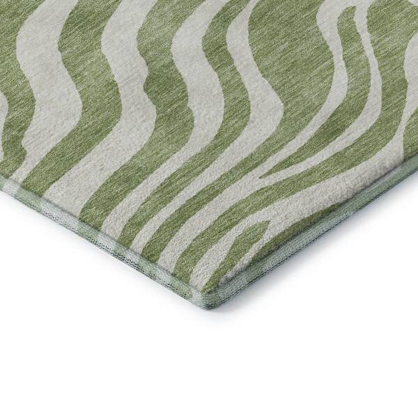 Mayfield Premium Machine Washable Abstract AMF1042 Aloe 8 ft. x 8 ft. Round Rug