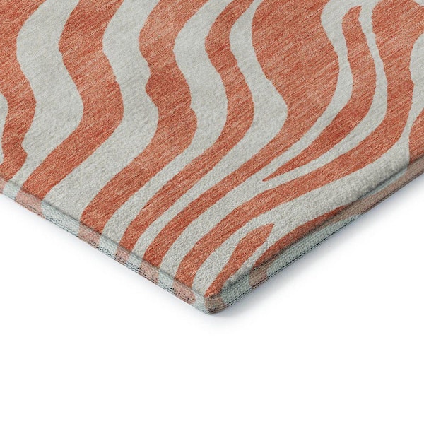 Mayfield Premium Machine Washable Abstract AMF1042 Coral 8 ft. x 8 ft. Round Rug