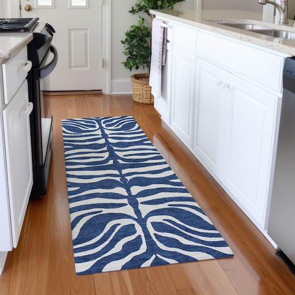 Mayfield Premium Machine Washable Abstract AMF1042 Navy 2 ft. 3 in. x 7 ft. 6 in. Runner Rug
