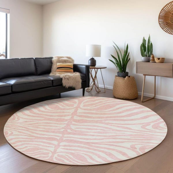Mayfield Premium Machine Washable Abstract AMF1042 Pink 8 ft. x 8 ft. Round Rug