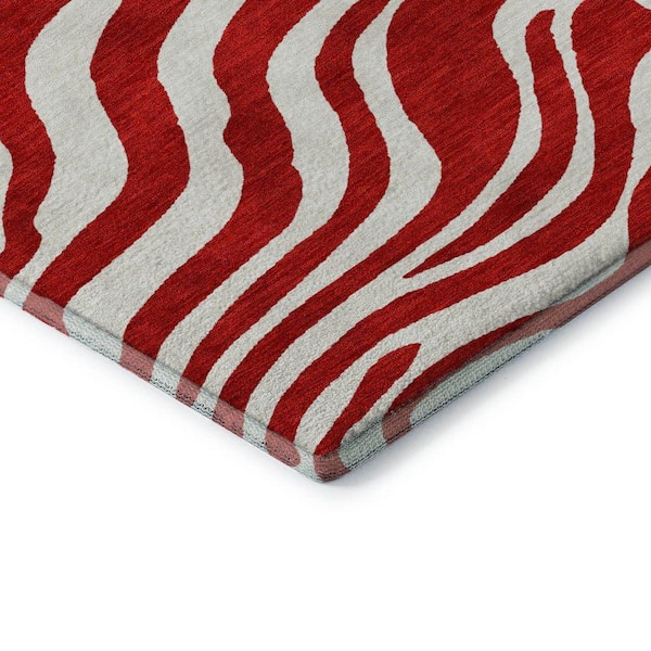 Mayfield Premium Machine Washable Abstract AMF1042 Red 8 ft. x 8 ft. Round Rug