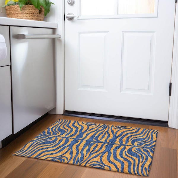 Mayfield Premium Machine Washable Abstract AMF1043 Navy 2 ft. x 3 ft. Area Rug