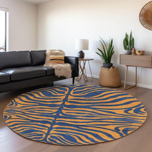 Mayfield Premium Machine Washable Abstract AMF1043 Navy 8 ft. x 8 ft. Round Rug