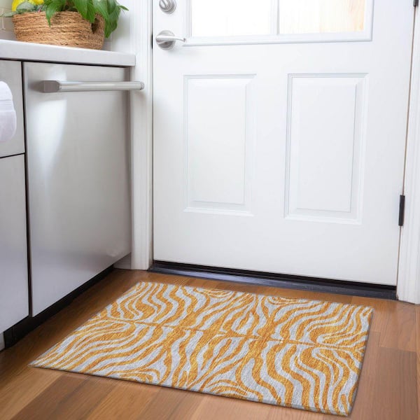 Mayfield Premium Machine Washable Abstract AMF1043 Orange 2 ft. x 3 ft. Area Rug