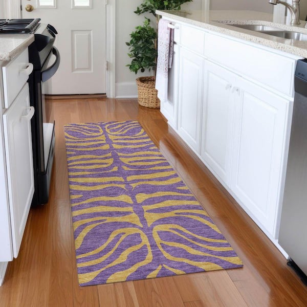 Mayfield Premium Machine Washable Abstract AMF1043 Purple 2 ft. 3 in. x 7 ft. 6 in. Runner Rug