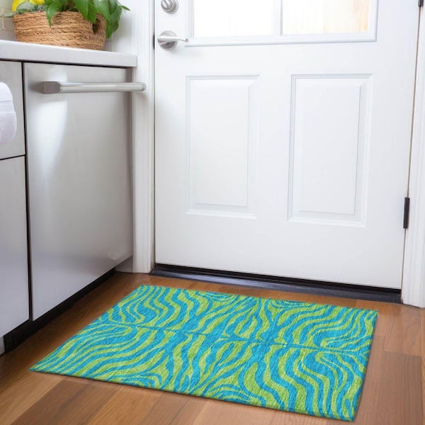 Mayfield Premium Machine Washable Abstract AMF1043 Teal 2 ft. x 3 ft. Area Rug