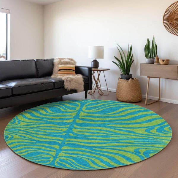 Mayfield Premium Machine Washable Abstract AMF1043 Teal 8 ft. x 8 ft. Round Rug
