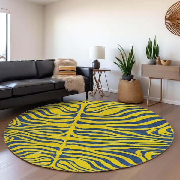 Mayfield Premium Machine Washable Abstract AMF1043 Yellow 8 ft. x 8 ft. Round Rug
