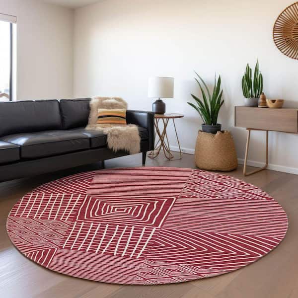 Mayfield Premium Machine Washable Abstract AMF1044 Garnet 8 ft. x 8 ft. Round Rug