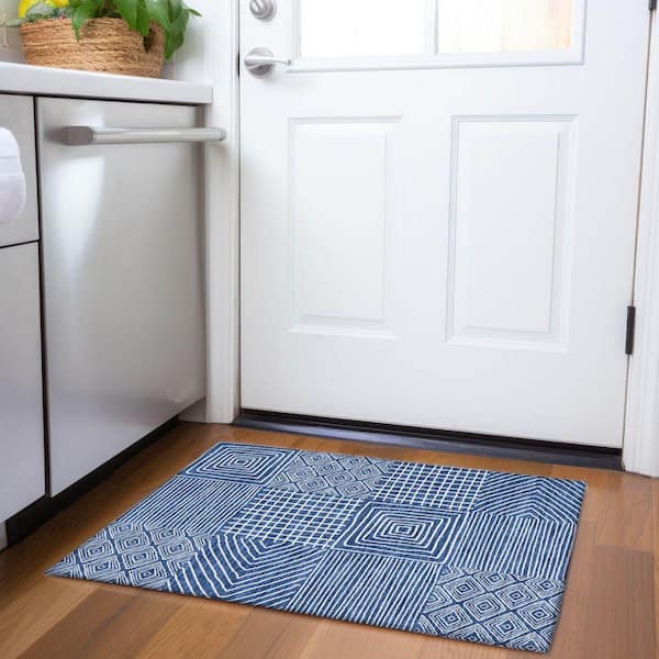 Mayfield Premium Machine Washable Abstract AMF1044 Navy 2 ft. x 3 ft. Area Rug