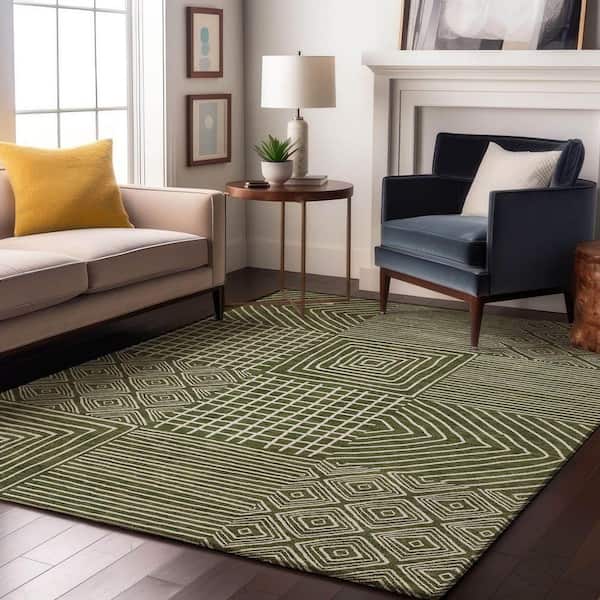Mayfield Premium Machine Washable Abstract AMF1044 Olive 3 ft. x 5 ft. Area Rug