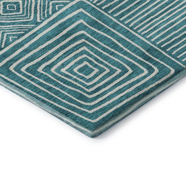 Mayfield Premium Machine Washable Abstract AMF1044 Teal 3 ft. x 4 ft. Area Rug