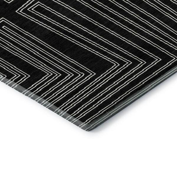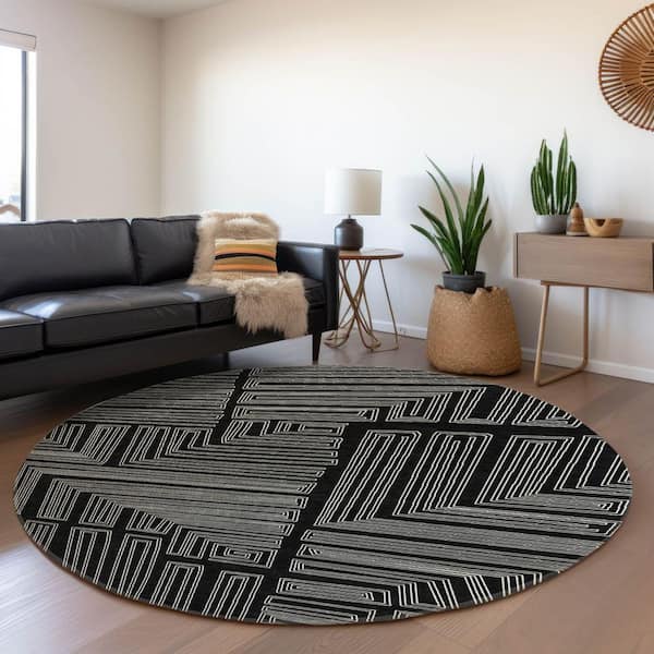 Mayfield Premium Machine Washable Abstract AMF1045 Black 8 ft. x 8 ft. Round Rug