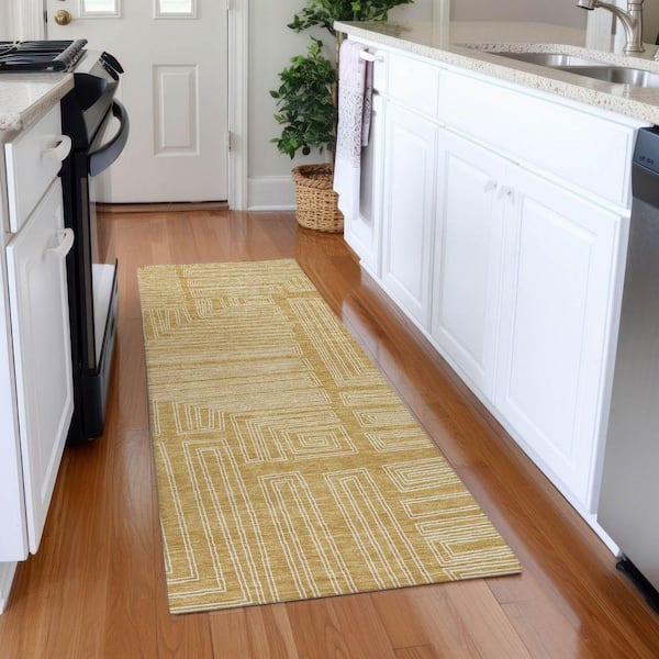 Mayfield Premium Machine Washable Abstract AMF1045 Gold 2 ft. 3 in. x 7 ft. 6 in. Runner Rug