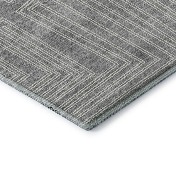 Mayfield Premium Machine Washable Abstract AMF1045 Gray 8 ft. x 8 ft. Round Rug