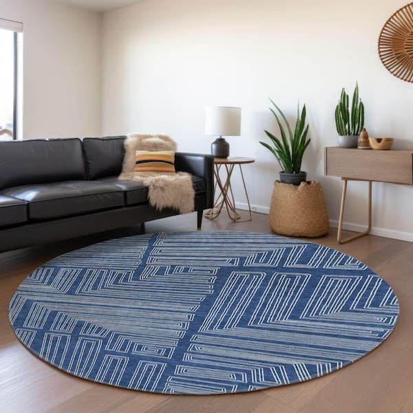 Mayfield Premium Machine Washable Abstract AMF1045 Navy 8 ft. x 8 ft. Round Rug