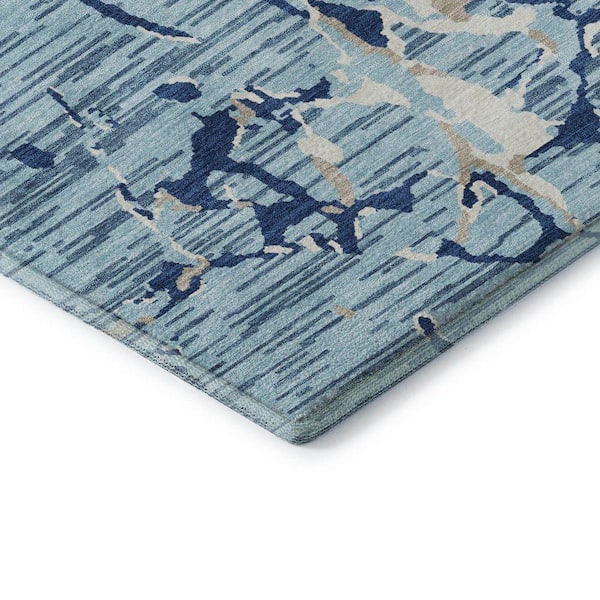 Mayfield Premium Machine Washable Abstract AMF1046 Denim 2 ft. 3 in. x 7 ft. 6 in. Runner Rug