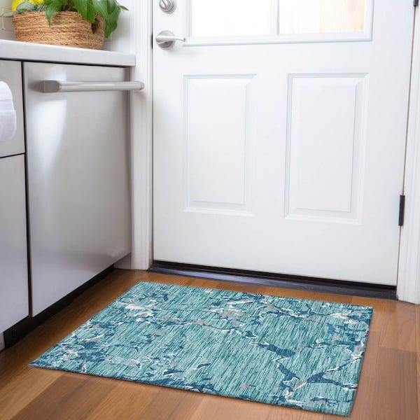Mayfield Premium Machine Washable Abstract AMF1046 Teal 2 ft. x 3 ft. Area Rug