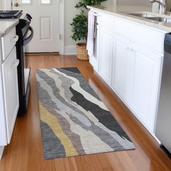 Mayfield Premium Machine Washable Abstract AMF1047 Gray 2 ft. 3 in. x 7 ft. 6 in. Runner Rug