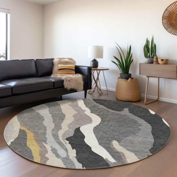 Mayfield Premium Machine Washable Abstract AMF1047 Gray 8 ft. x 8 ft. Round Rug