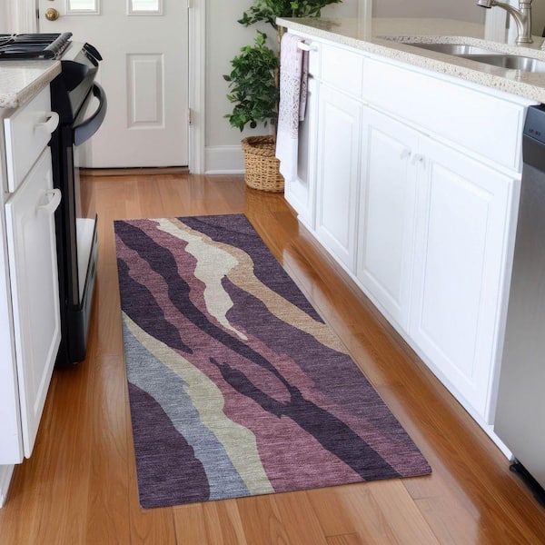 Mayfield Premium Machine Washable Abstract AMF1047 Plum 2 ft. 3 in. x 7 ft. 6 in. Runner Rug
