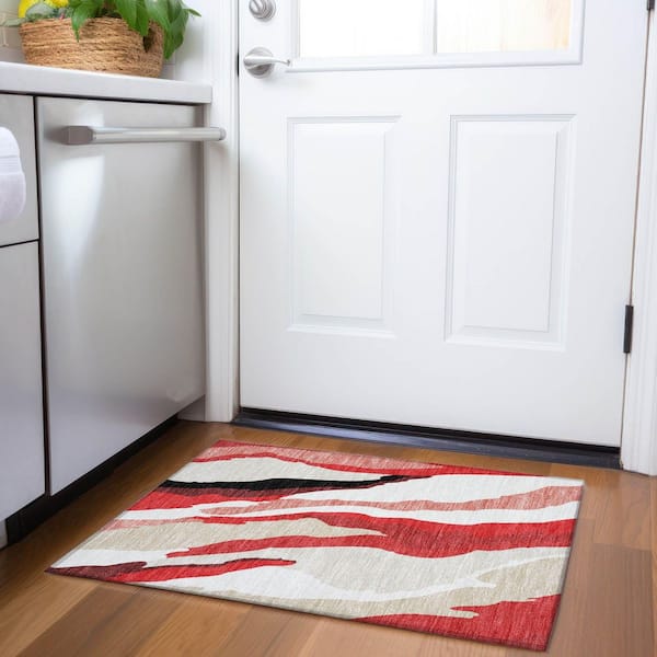 Mayfield Premium Machine Washable Abstract AMF1047 Red 2 ft. x 3 ft. Area Rug