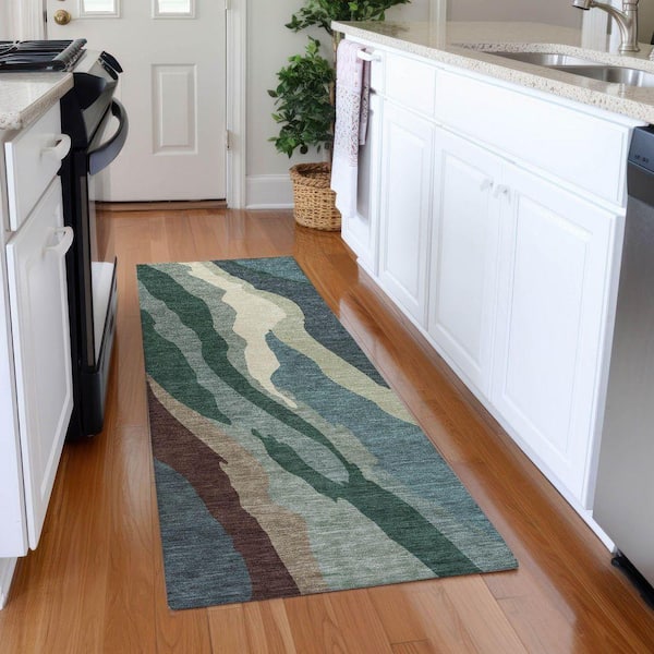 Mayfield Premium Machine Washable Abstract AMF1047 Sage 2 ft. 3 in. x 7 ft. 6 in. Runner Rug