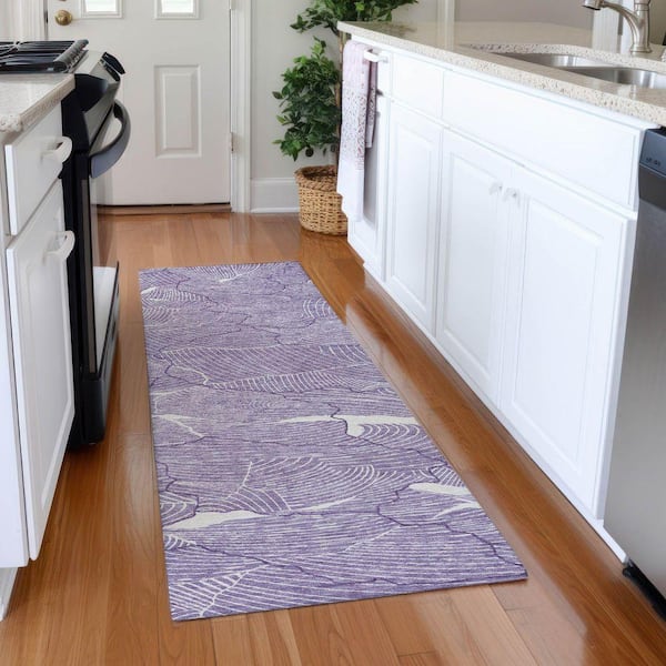 Mayfield Premium Machine Washable Abstract AMF1048 Purple 2 ft. 3 in. x 7 ft. 6 in. Runner Rug