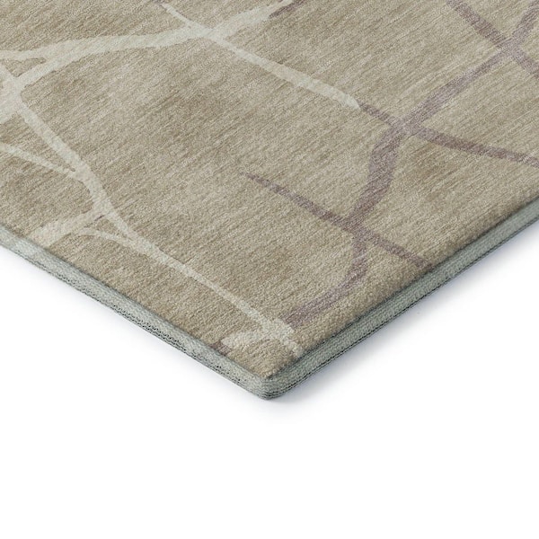 Mayfield Premium Machine Washable Abstract AMF1049 Beige 8 ft. x 8 ft. Round Rug