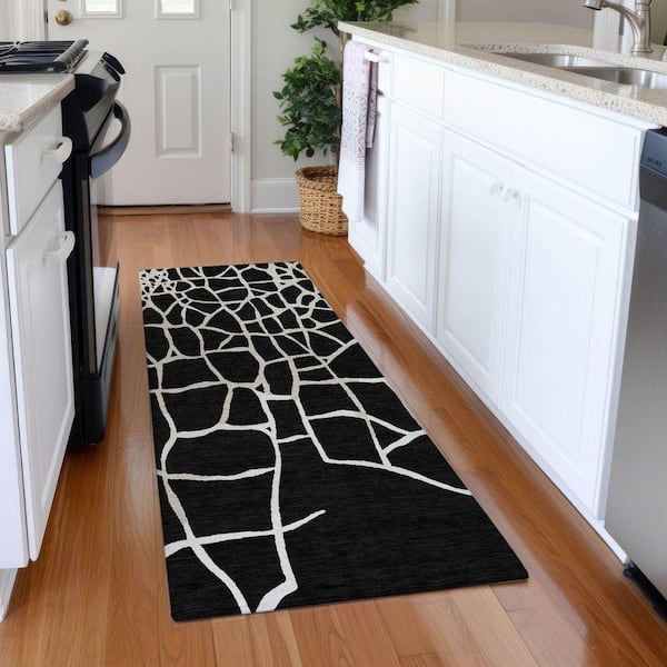 Mayfield Premium Machine Washable Abstract AMF1049 Black 2 ft. 3 in. x 7 ft. 6 in. Runner Rug