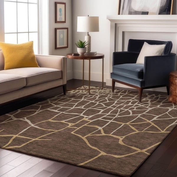 Mayfield Premium Machine Washable Abstract AMF1049 Brown 9 ft. x 12 ft. Area Rug