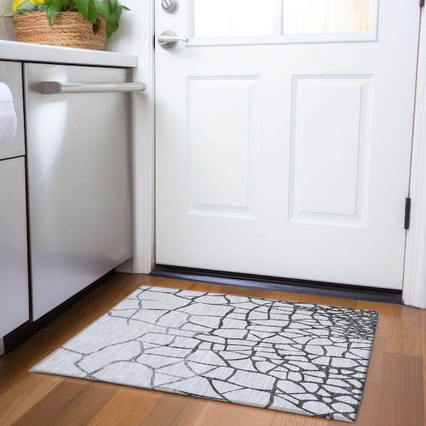 Mayfield Premium Machine Washable Abstract AMF1049 Gray 2 ft. x 3 ft. Area Rug
