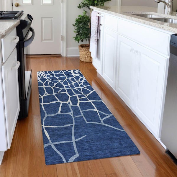 Mayfield Premium Machine Washable Abstract AMF1049 Navy 2 ft. 3 in. x 7 ft. 6 in. Runner Rug