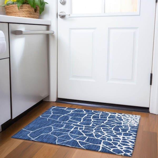 Mayfield Premium Machine Washable Abstract AMF1049 Navy 2 ft. x 3 ft. Area Rug