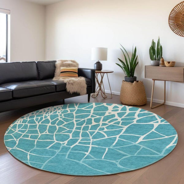 Mayfield Premium Machine Washable Abstract AMF1049 Teal 8 ft. x 8 ft. Round Rug