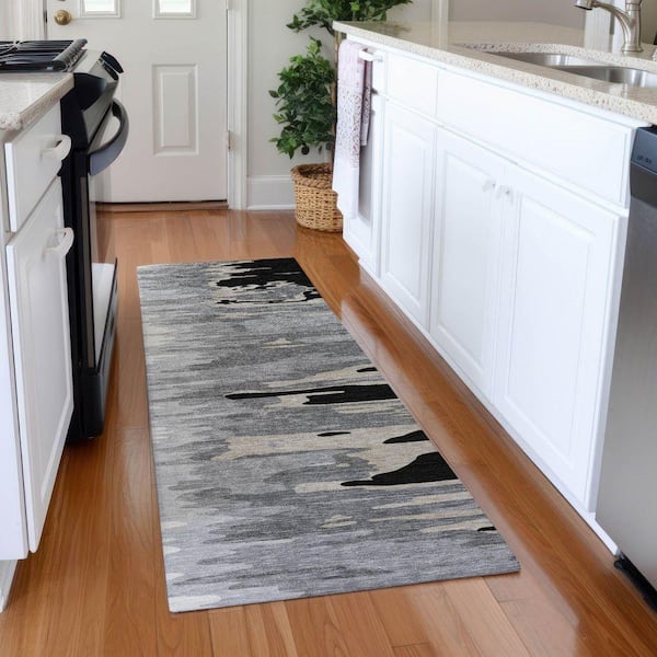 Mayfield Premium Machine Washable Abstract AMF1050 Black 2 ft. 3 in. x 7 ft. 6 in. Runner Rug