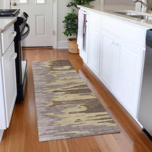 Mayfield Premium Machine Washable Abstract AMF1050 Coffee 2 ft. 3 in. x 7 ft. 6 in. Runner Rug