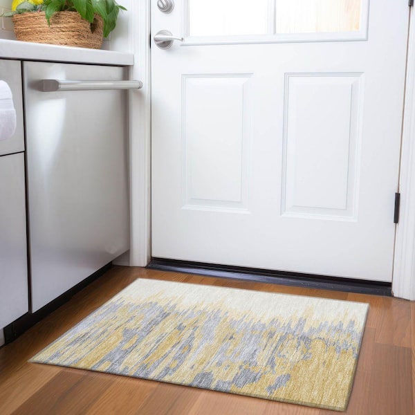 Mayfield Premium Machine Washable Abstract AMF1050 Gold 2 ft. x 3 ft. Area Rug