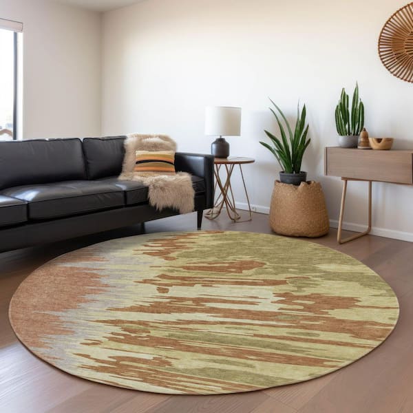 Mayfield Premium Machine Washable Abstract AMF1050 Rust 8 ft. x 8 ft. Round Rug