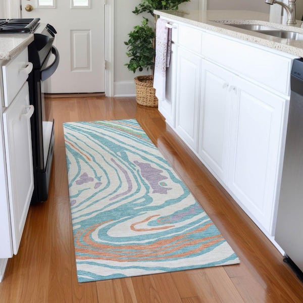 Mayfield Premium Machine Washable Abstract AMF1051 Linen 2 ft. 3 in. x 7 ft. 6 in. Runner Rug