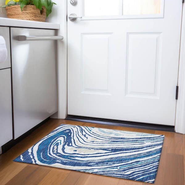 Mayfield Premium Machine Washable Abstract AMF1051 Navy 2 ft. x 3 ft. Area Rug